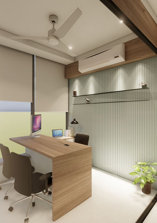 Around 500 sq.ft. of compact space accommodating a large no. of employees team of 15 people. Equipped with latest technological systems and fully automated services, the material palette is kept simple and calm yet elegant resulting into a timeless interior space